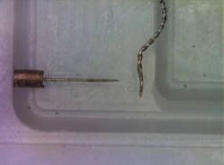 The Manual ElectroPointer™ is designed to make sample preparation for Atom Probe analysis easy and convenient. The ElectroPointer electropolishes the samples by applying a DC or AC current via a platinum loop that holds a drop of electrolyte. The electrolyte is replenished by periodically dipping it in the electrolyte reservoir.
